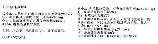 在工程設計中有時會碰到這樣的情況,要求產品既能伴熱保溫。又能將介質開始是靜止的或流速較慢,流量較少,且所需升溫的度數不高時,有時用電伴熱產品也可以滿足設計要求。此時,該電伴熱產品的設計功率所產生的熱量按下式計算: