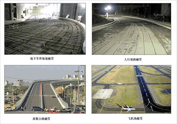 潔凈的人行路面,使人們活動(dòng)無(wú)冰雪困擾;避免傳統(tǒng)道路除冰雪方式帶來(lái)的昂貴費(fèi)用及除雪劑給路面帶來(lái)的損害 ;有效的融化坡道、階梯、直升機(jī)起降站和其它路面上的冰雪,清除危險(xiǎn),減少不便;