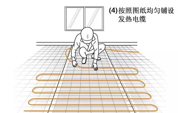 3、按照圖紙均勻鋪設發(fā)熱電纜;