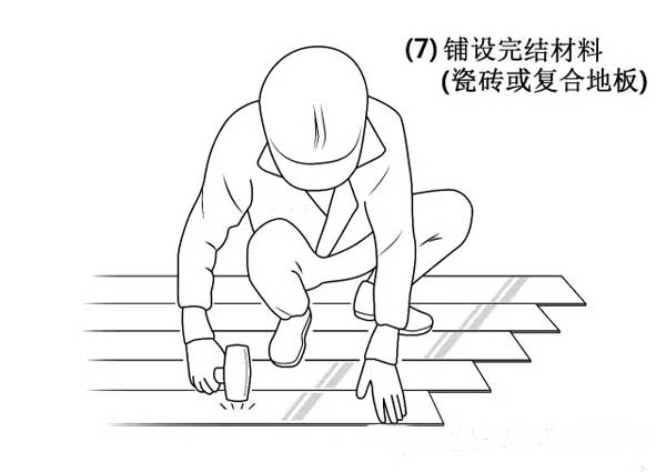 6、鋪設地面材料(瓷磚或復合地板);