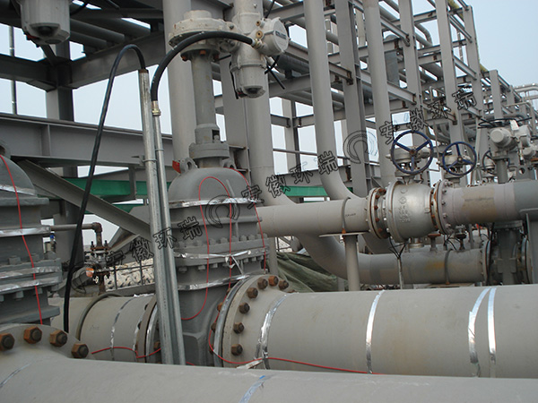 2、沿管道布電伴熱帶,并避免將電伴熱帶放置于毛刺和利角上,