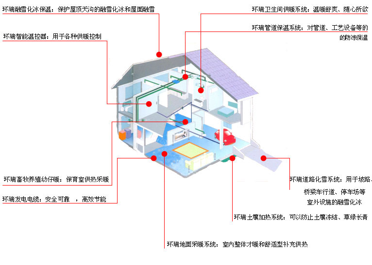 ★ 實現綠色環保采暖:系統使用過程中不產生任何有害物質,為全環保綠色產品,提高了人們的生活質量。